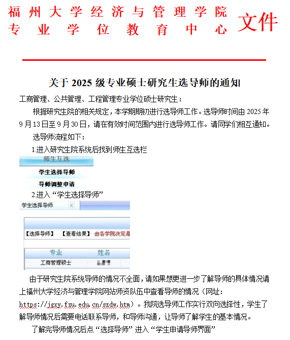 关于2025级专业硕士研究生选导师的通知