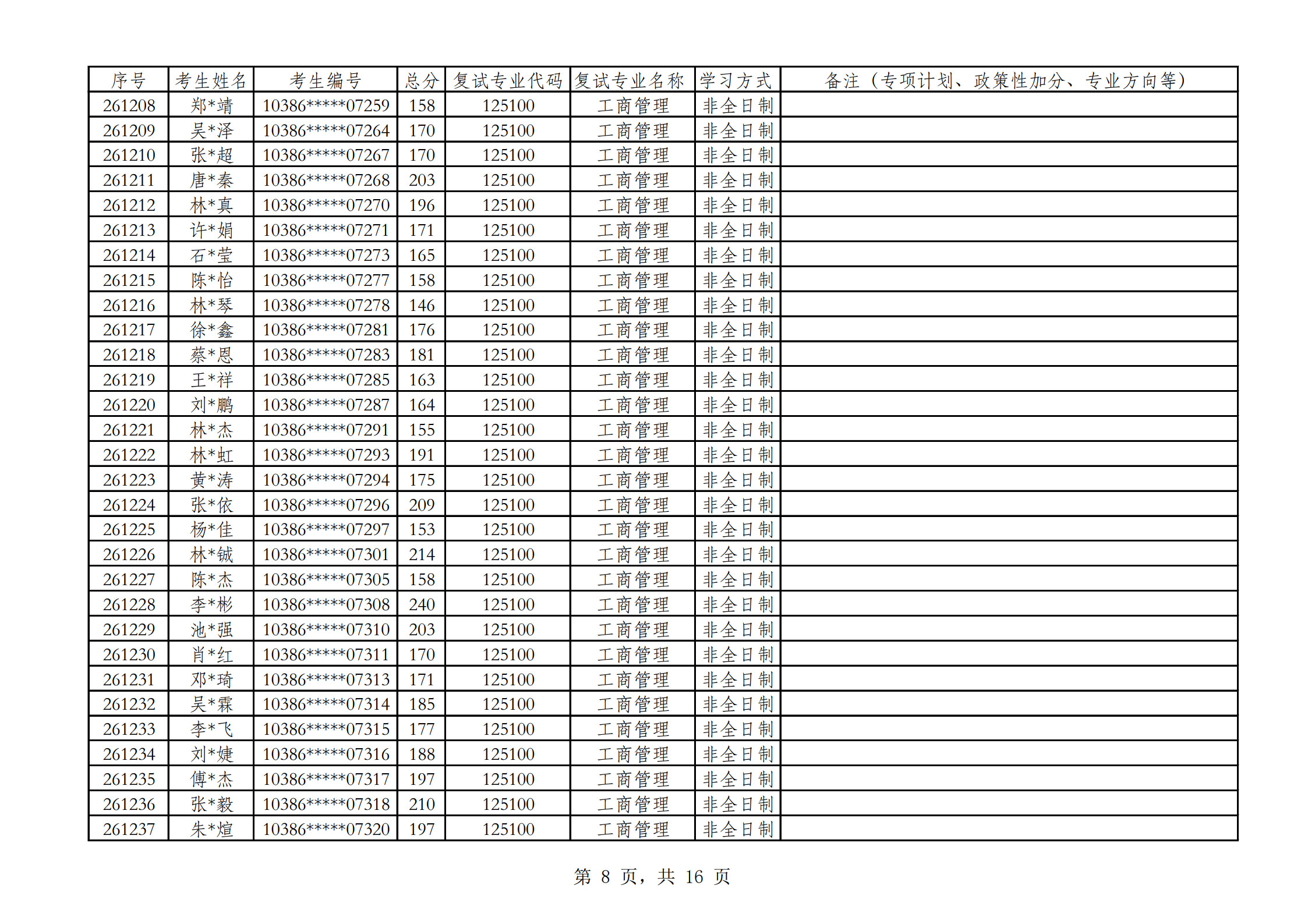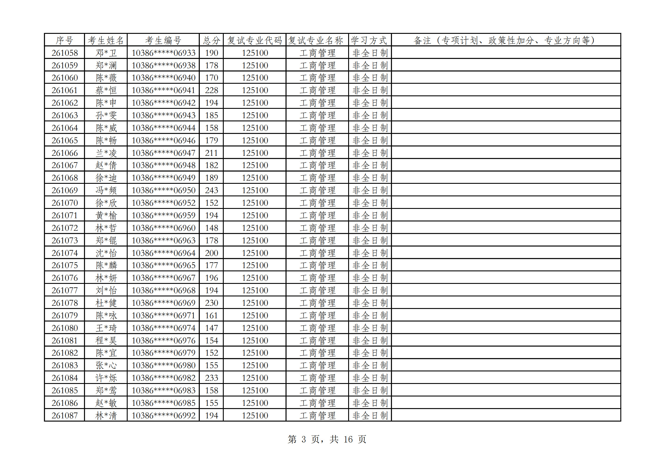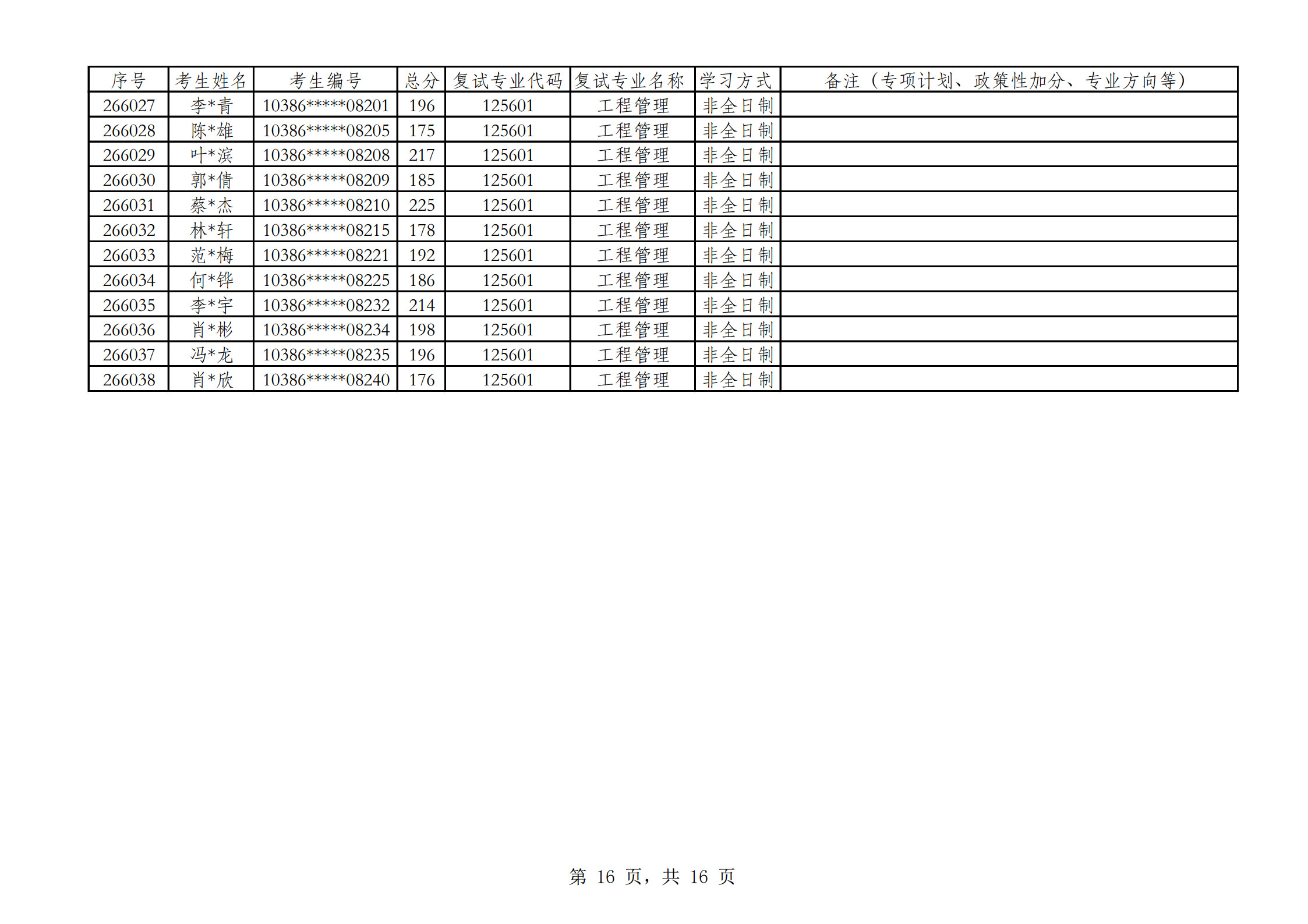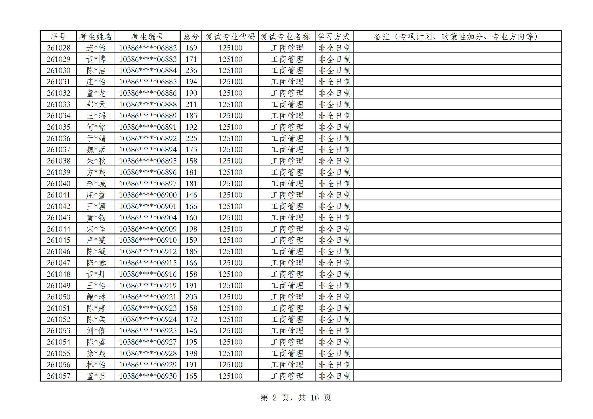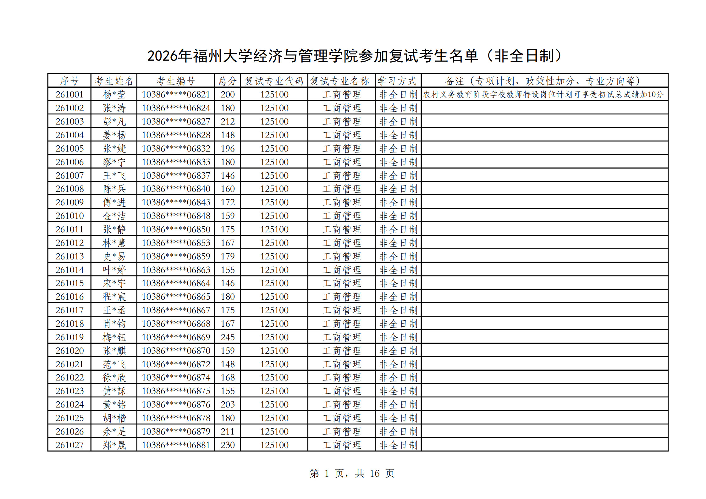 2026福州大学经济与管理学院参加复试考生名单(非全日制)